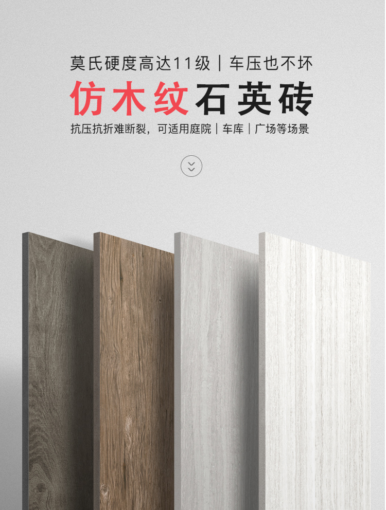 復(fù)刻天然木材的紋理觸感,石英磚材質(zhì),表面有自然的木紋起伏,兼顧質(zhì)感與耐用性