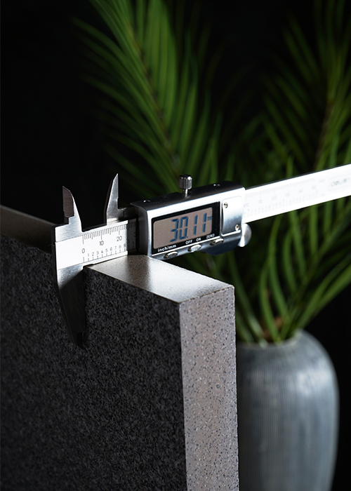 天然石材和仿石厚磚同樣1.8cm厚,用車(chē)試壓后,天然石材很容易破損,仿石厚磚則完好無(wú)缺。
