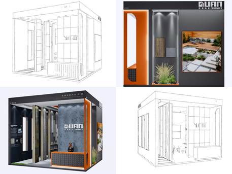 為了貼合展會屬性與客戶群體的需求,我們更多地用特有設計形式搭配各類高端成品,來展現(xiàn)各類生態(tài)石英磚產(chǎn)品的魅力,讓參展觀眾能夠深刻感受到石英磚對石材品類的替代能力,以及石英磚在設計定制方面不亞于石材的強大優(yōu)勢!
