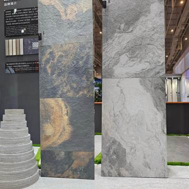 不同規(guī)格、不同厚度的熱門生態(tài)石英磚產(chǎn)品同臺亮相,臺面飾面、從厚到薄、由墻及地,充分展示其在不同場景和空間的應用能力。