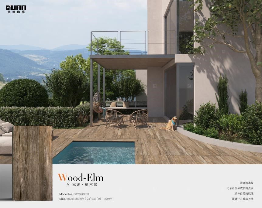冠源榆木紋——傳承自然之美,將代表生生不息的,自然生態(tài)環(huán)境中的衍生者“木”,以現(xiàn)代新工藝,刻畫于生態(tài)石英磚的表層,融入家居生活,鋪于別墅花園、庭院小徑......只為留下這盎然生機,將這份自然之美永久留存。